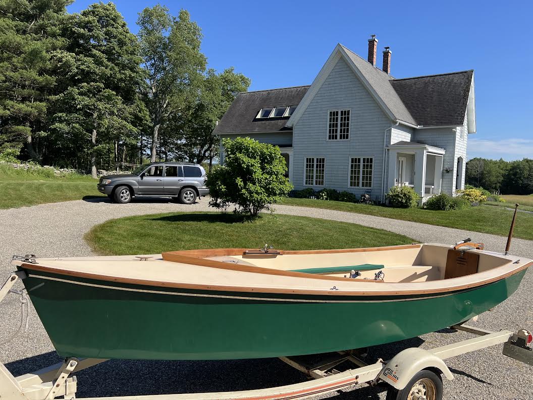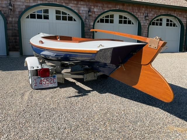 The boat comes with a galvanized trailer that is in like new condition with almost no miles.  The tires are now new as the trailer and boat have been in storage since new.  Specifications  LOA 13’ 8”   Beam 4’ 3”  Draft 6” to 2’ 6” .  Sail area 62 sq. ft.   13’ 8” x 4’ 3” x 235 LBS. Call 413-335-6402 or email Tim.classicsailboatshop@gmail.com