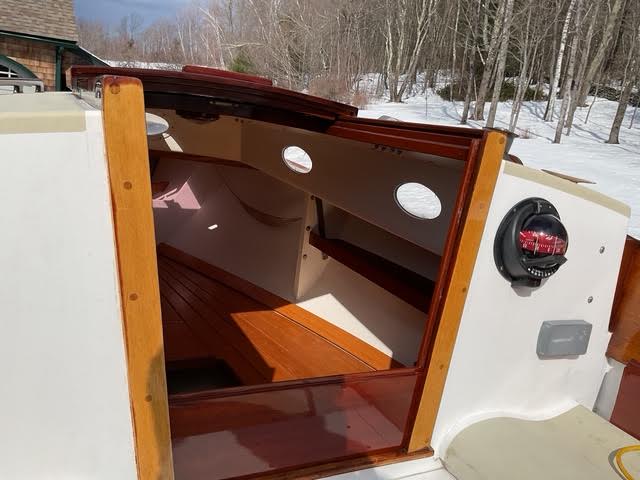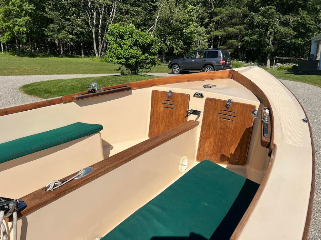 This Point Jude 15 has was unused and in heated storage from New 1989 until 2021. It was used seasonally and lightly from 2021-2023. She is the closest to a New Point Jude Sailboat you will ever find. 3 HP Torqueedo Electric Outboard available at additional cost. Contact Tim.classicsailboatshop@com. 413-225-6402